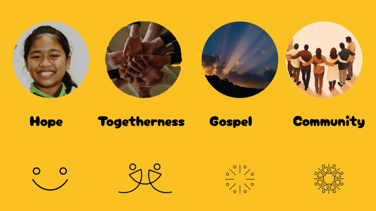 شخصیات ایک دوسرے سے ملی ہوئی دکھائی دیتی ہیں، جو ہاتھوں کے باہمی ربط کو ظاہر کرتی ہیں۔ یہ ایشیائی کلیسیا کی وحدت اور باہمی تعاون کی نشانی ہے۔