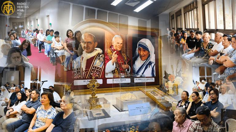 اس کے بعد ان مقدسین کے تبرکات، جن میں مقدس پوپ جان پال دوم کی ٹوپی (اسکل کیپ) بھی شامل تھی، باوقار جلوس کے ساتھ لائی گئیں۔